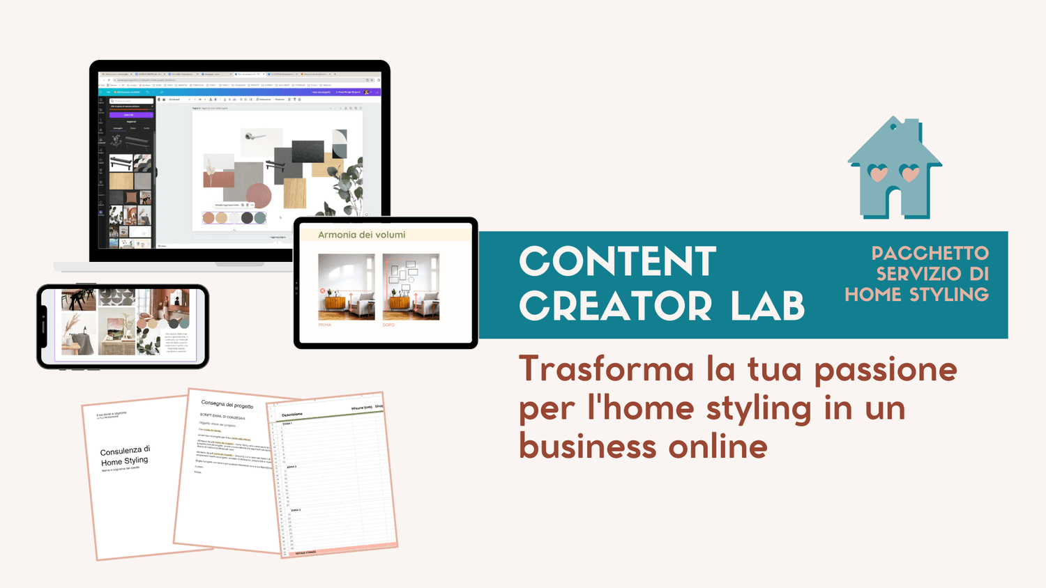 Potrai compiere il tuo primo passo verso il tuo gratificante business online, accedendo al Pacchetto Servizio di Home Styling di Content Creator Lab a un prezzo speciale di 37€.