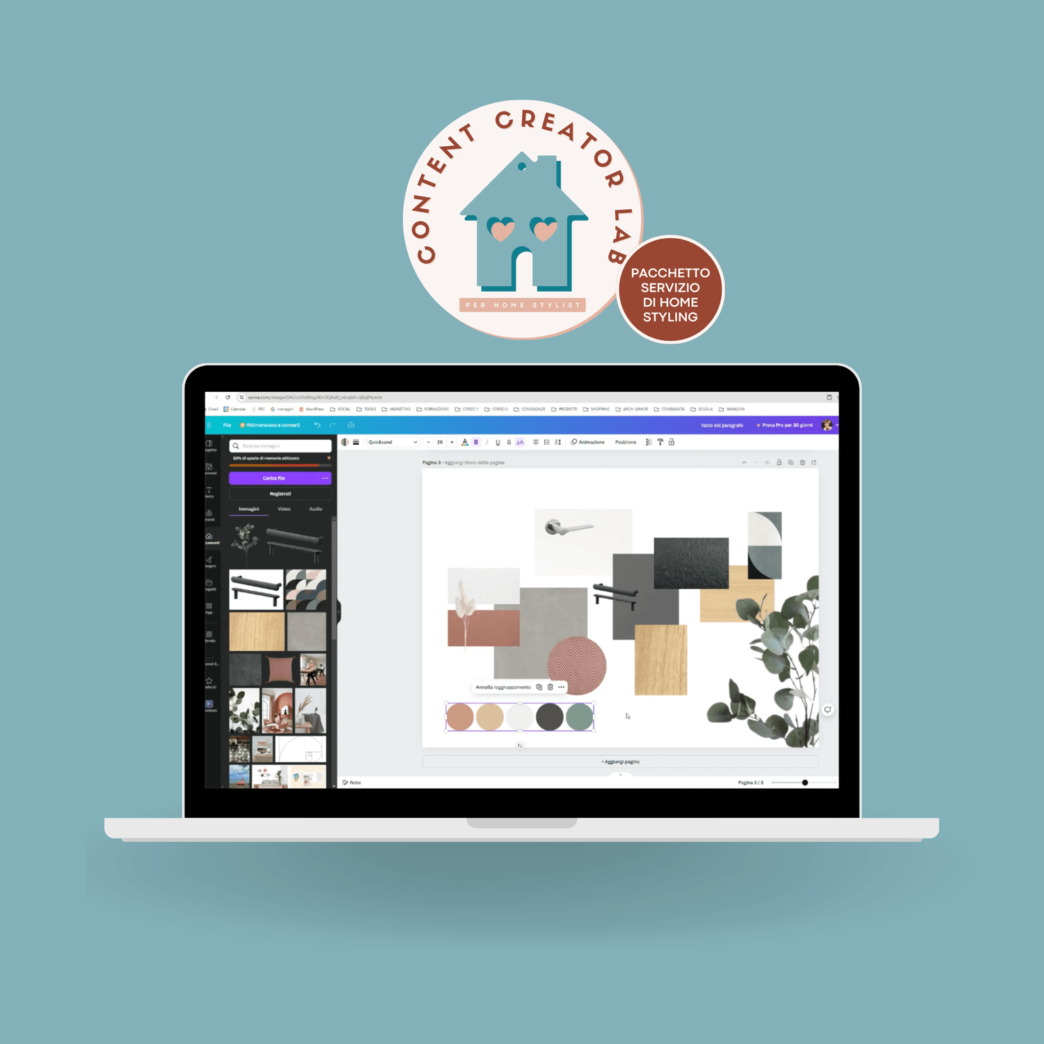 Il Pacchetto Servizio di Home Styling è una porzione del mio percorso di affiancamento, Content Creator Lab, pensato per aiutarti a costruire un business di consulenze di arredo online. Include il modulo 6: